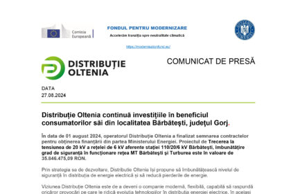 Distribuție Oltenia continuă investițiile în beneficiul consumatorilor săi din localitatea Bărbătești, județul Gorj