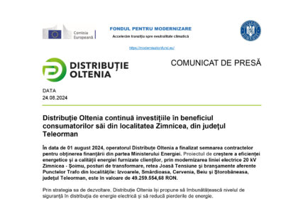 Distribuție Oltenia continuă investițiile în beneficiul consumatorilor săi din localitatea Zimnicea, din județul Teleorman