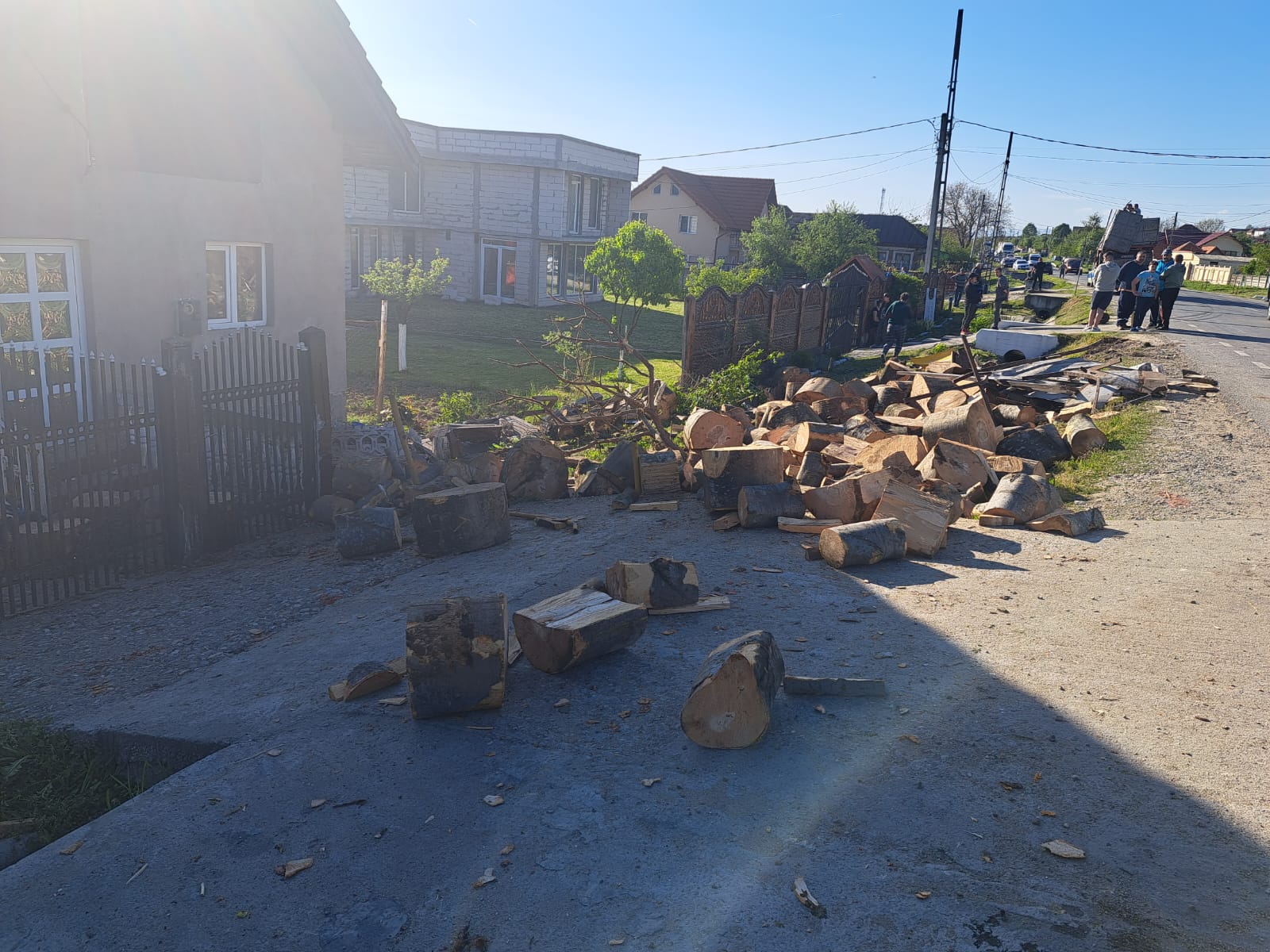 Bărbat rănit, după ce o mașină cu lemne s-a răsturnat în curtea sa