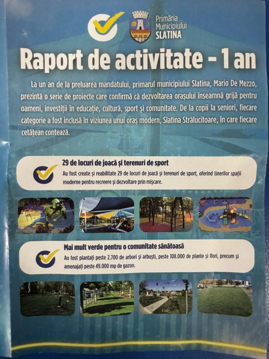 Primăria Slatina a comandat tipărirea unui număr impresionant de 37.000 de pliante menite să sintetizeze raportul de activitate al primarului Mario De Mezzo pentru primul an de mandat. Materialele informative…