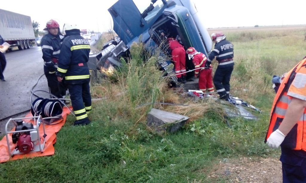 Potrivit ISU Dolj, la fața locului s-a deplasat Detașamentului de Pompieri Calafat cu un echipaj de descarcerare și o autospecială de lucru cu apă și spumă. Ajunși la fața locului pompierii au constatat că Tir-ul se răsturnase pe partea stângă în șanțul de apă pluvială, iar șoferul era încarcerat în cabină.