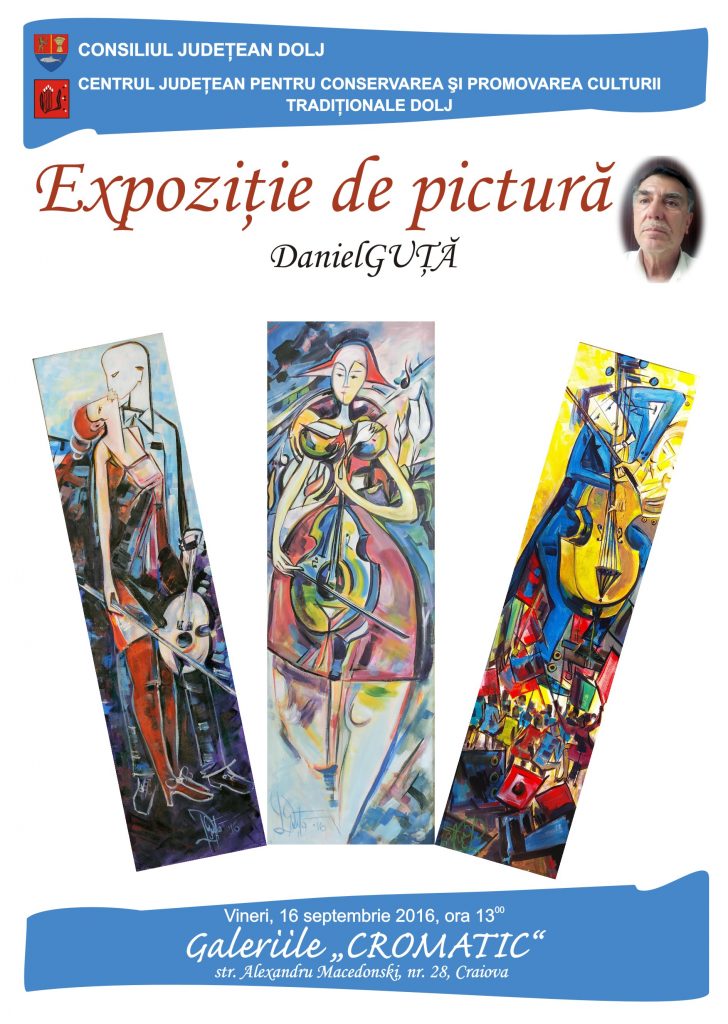 Consiliul Judeţean Dolj şi Centrul Judeţean pentru Conservarea şi Promovarea Culturii Tradiţionale Dolj vă invită vineri, 16 septembrie 2016, ora 13:00, la vernisajul Expoziţiei de pictură, semnată Daniel Guţă, artist plastic în cadrul Biroului Imagine al Filarmonicii “Oltenia” Craiova.