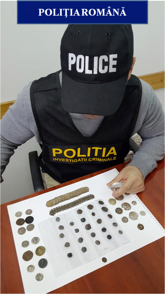 Un craiovean a fost prins de polițiști în timp ce vindea pe internet 25 de monede romane, iar în urma unei percheziții efectuate la domiciliul acestuia au fost depistate și alte monede antice. Tânărul le găsise cu ajutorul unui detector de metale.