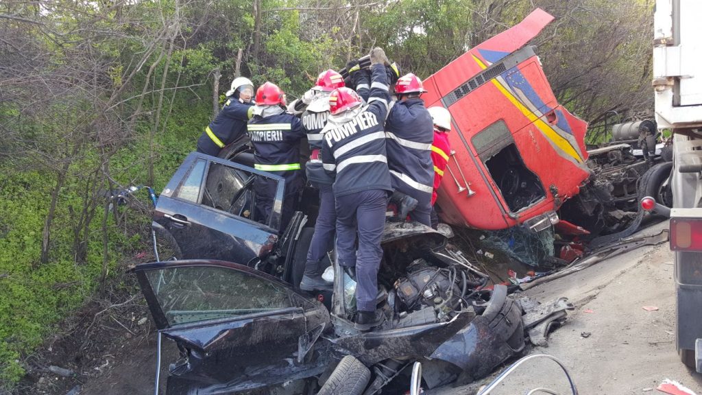 Accidentul de la Pădurea Sarului s-a petrecut, luni, după ce o anvelopă a autotrenului a explodat, TIR-ul intrând pe contrasens şi lovind celelalte două autoturisme, în care se aflau familia şi antrenorul.