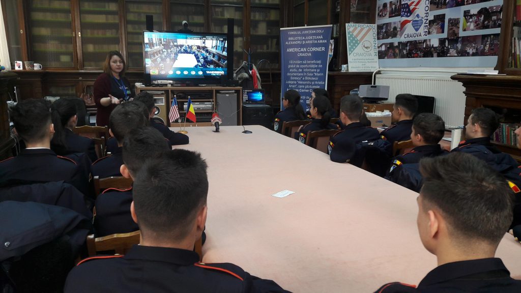 Elevii Colegiului Național Militar “Tudor Vladimirescu” din Craiova au mers, marţi, la Biblioteca Judeţeană „Alexandru şi Aristia Aman”, unde, la American Corner, a fost organizată videoconferinţa cu titlul “Volunteerism in the U.S.A.”, susținută de Scott Reese, atașatul cultural al Ambasadei S.U.A. la București.