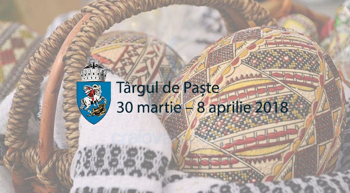 Primăria Municipiului Craiova invită craiovenii, în perioada 30 martie – 8 aprilie 2018, la Târgul de Paște Craiova 2018.