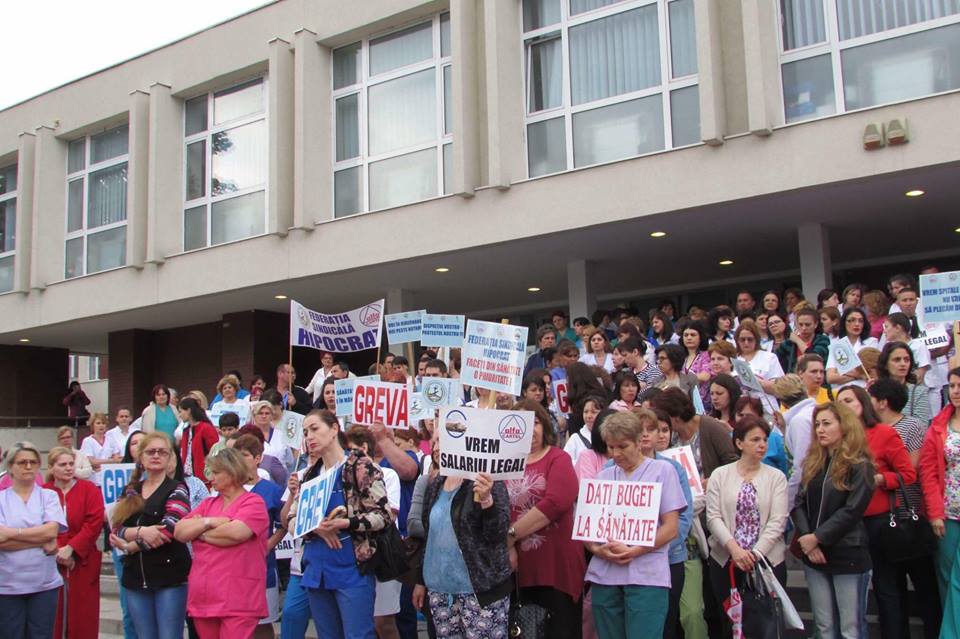 Sute de angajaţi ai Spitalului Judeţean de Urgenţă din Craiova, asistenţi, infirmieri, brancardieri, îngrijitoare și restul personalului mediu și auxiliar au protestat, luni dimineaţă, în curtea instituţiei sanitare în semn de nemulţumire faţă de întârzierea găsirii unor soluții viabile, financiare, care să conducă la eliminarea problemelor ce au generat diminuarea veniturilor pentru unele categorii profesionale. Timp de două ore, salariații au scandat lozinci împotriva celor din Ministerul Sănătății reclamând că le-au scăzut salariile din cauza faptului că multe dintre sporuri le-au fost tăiate sau le primesc la nivel minim.