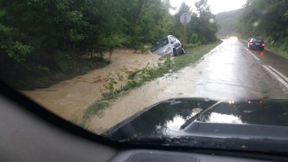 O ploaie torenţială a făcut prăpăd, luni seara, în localitatea Licurici din Gorj. Pârâul din zona Drumului Naţional 67 B şi-a ieşit din matcă, acoperind partea carosabilă pe o lungime de doi kilometri. De asemenea, în drumul spre Târgu Cărbuneşti, de la Hurezani, o maşină a fost luată de ape şi dusă în şanţ.