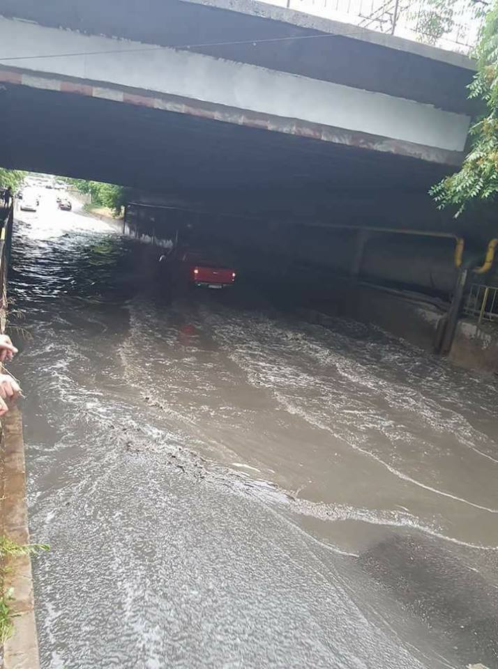 Update/ Masina blocata in apa de sub pasajul din Bariera Valcii. Soferul s-a aventurat, desi circulatia era inchisa.