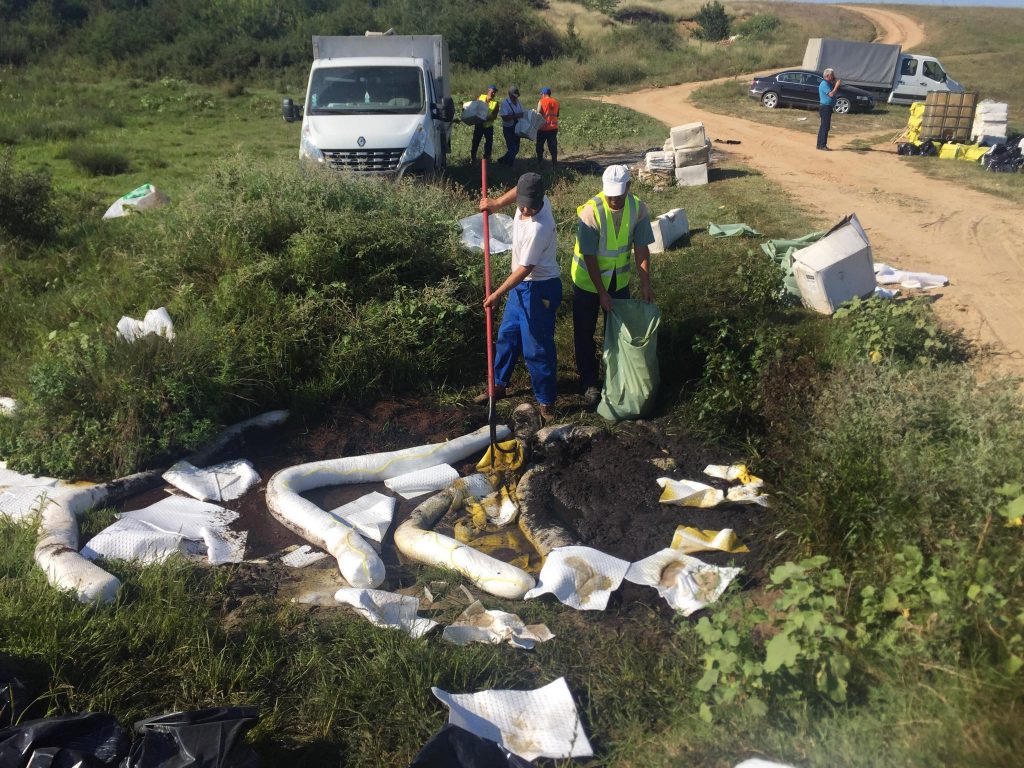 S-a administrat de către reprezentanţii GFR material absorbant în acumularea Preajba (în balta rămasă în urma pompării apei curate din acumulare).