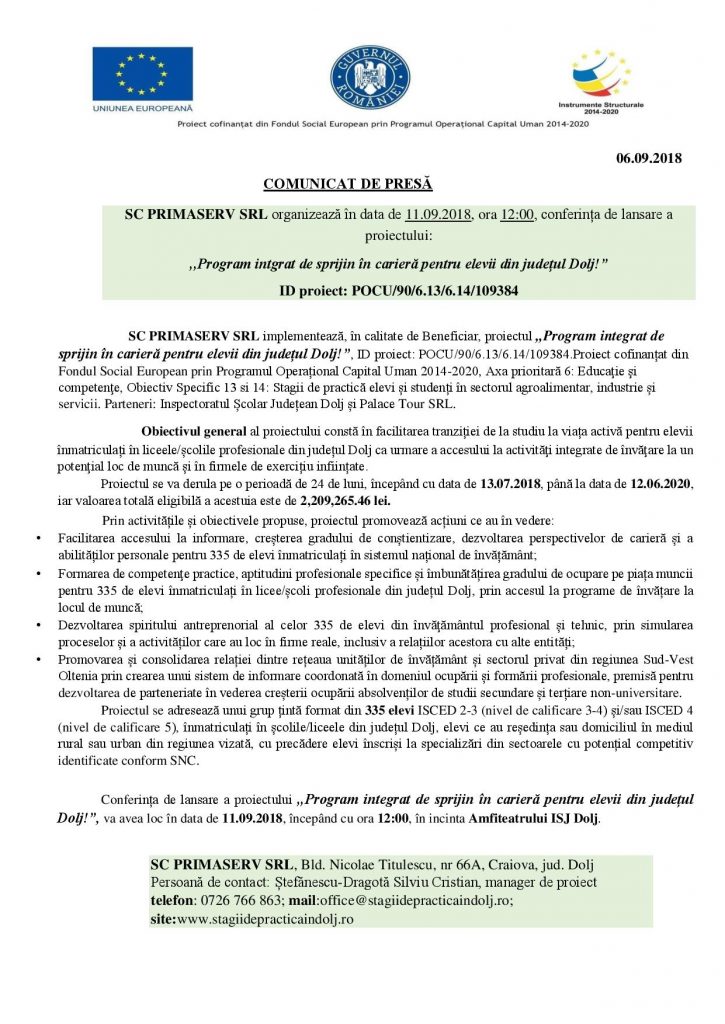 DoljEconomieProgram integrat de sprijin în carieră pentru elevii din județul Dolj! Jurnalul Olteniei 8 aprilie 2025 Share SHARE Jurnalul Olteniei See Full Bio Distribuie acest articol Facebook Whatsapp Whatsapp Email Copy Link Print Articolul precedent Alte 5 cazuri de West Nile, in Dolj Articolul următor Resurse umane competitive, afaceri de succes! Ultima ora Protest la Craiova pentru justiție și împotriva corupției 12 decembrie 2025 Alertă alimentară: Lapte NAN Nestlé retras urgent din magazine 12 decembrie 2025 Cadouri cool de Crăciun pentru adolescenți 12 decembrie 2025 Satul oltenesc la Craiova. Tradiții de iarnă 12 decembrie 2025 Premieră medicală la Spitalul Craiova: Procedură fără tăieturi pentru o boală rară a esofagului 12 decembrie 2025 Editura Nemira lansează un experiment A.I. care arată cum i-ar putea afecta pe adolescenți noua programă pentru pentru limba și literatura română propusă de Ministerul Educației și Cercetării 12 decembrie 2025 Polițist din Dolj, reținut pentru luare de mită: „Ierta” vitezomanii în schimbul banilor 12 decembrie 2025 Kovesi a semnat apelul magistraților români pro-justiție 12 decembrie 2025 Investiții de milioane în reabilitarea energetică a sediilor de poliție din Gorj: trei clădiri modernizate prin PNRR 12 decembrie 2025 Percheziții în Orșova: 27 kg de articole pirotehnice confiscate 12 decembrie 2025