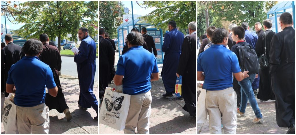 Sutele de preoţii veneau dinspre Casa de Cultură a Sindicatelor din Slatina şi mergeau spre Prefectura Olt, cel mai probabil la un restaurant din zonă. Ei participaseră la o „întânire de suflet” cu marele actor Dorel Vișan, potrivit site-ului oficial al Episcopiei Slatinei şi Romanaţilor. În grupul de feţe bisericeşti a putut fi văzut şi episcopul Sebastian Paşcanu, alături de Dorel Vişan, însă până la trecerea acestora, cerşetorul renunţase la a mai apela la mila slujitorilor Bisericii.