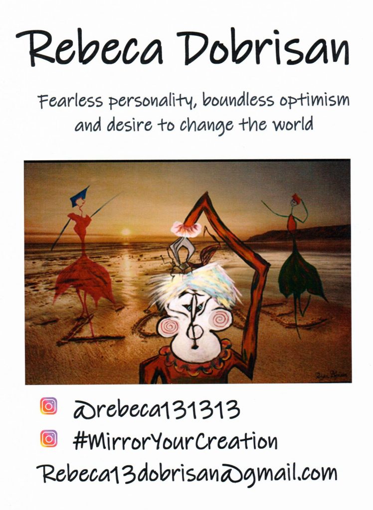 Rebeca Dobrișan s-a născut în 1989 în Craiova și a absolvit Jurnalismul în cadrul Universității din Craiova. Artista experimentează diferite forme și culori în acrylic, apelând la imaginația sa fără limite.