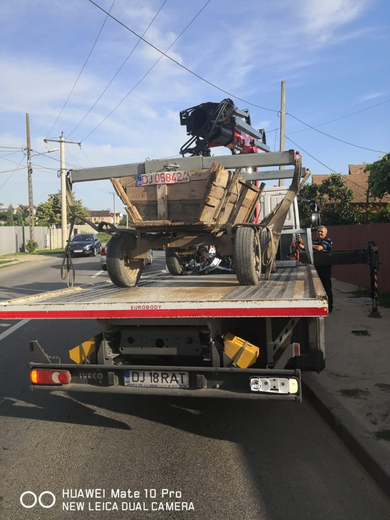 „Polițiștii locali cu atribuții în domeniul circulației din cadrul Poliției Locale a Municipiului Craiova, împreună cu funcționari ai Societății RAT Craiova, au organizat în perioada 10 – 13 iunie 2019 mai multe acțiuni punctuale, în zona intrărilor în municipiul Craiova, având ca obiect depistarea vehiculelor cu tracțiune animală care se deplasează pe raza municipiului Craiova, cu încălcarea prevederilor legale în vigoare, precum și identificarea și sancționarea proprietarilor / utilizatorilor acestora.