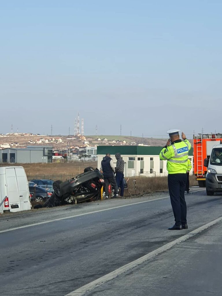 Un craiovean de 37 ani s-a rasturnat cu masina pe Centura de Nord a orasului, dupa un impact cu o masina condusa de un tanar din Olt.