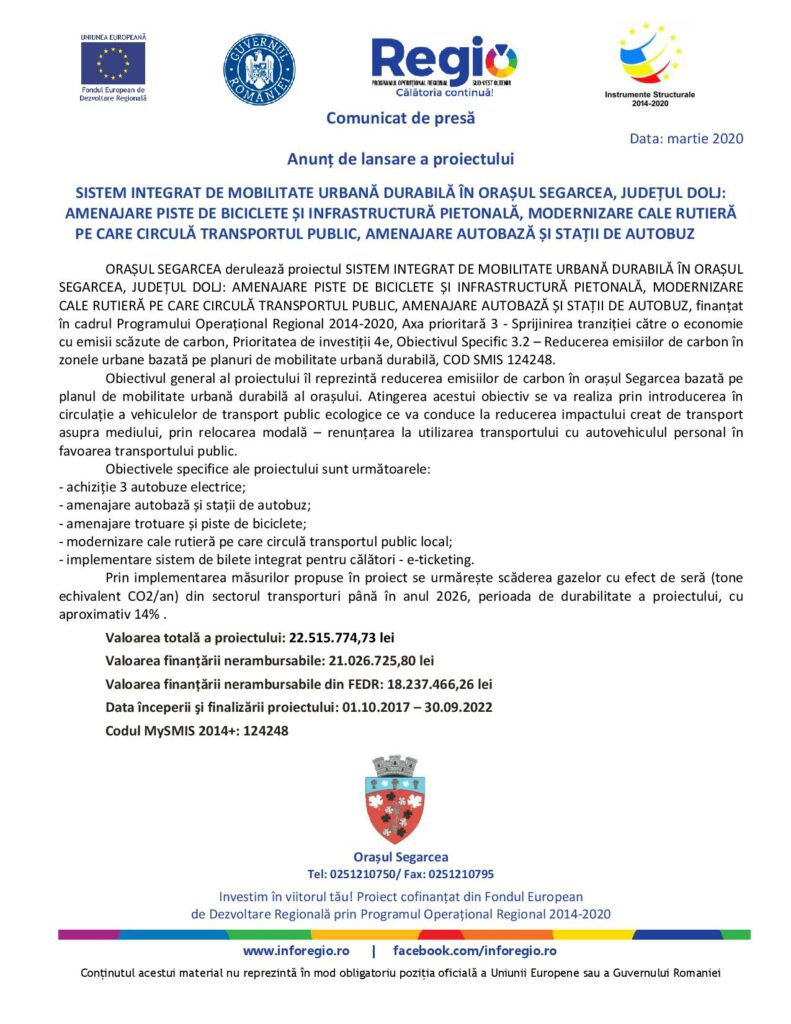 DoljEconomieSISTEM INTEGRAT DE MOBILITATE URBANĂ DURABILĂ ÎN ORAȘUL SEGARCEA, JUDEȚUL DOLJ: AMENAJARE PISTE DE BICICLETE ȘI INFRASTRUCTURĂ PIETONALĂ, MODERNIZARE CALE RUTIERĂ PE CARE CIRCULĂ TRANSPORTUL PUBLIC, AMENAJARE AUTOBAZĂ ȘI STAȚII DE AUTOBUZ Jurnalul Olteniei 18 martie 2020 Share SHARE Jurnalul Olteniei See Full Bio Distribuie acest articol Facebook Whatsapp Whatsapp Email Copy Link Print Articolul precedent Vâlcea. Suspecţi de coronavirus, văzuţi la cumpărături în oraș Articolul următor Coronavirus. Peste 200.000 de cazuri confirmate și 8000 de decese Ultima ora Insolvența Electrocentrale Craiova, admisă oficial: explicațiile autorităților 15 decembrie 2025 Toxina botulinică în recuperare: Tratamentul gratuit pentru spasticitate, explicat de specialişti 15 decembrie 2025 EXCLUSIV! Scandal cu violențe în Craiova: Conflictul durează de 8 ani 15 decembrie 2025 Atribuirea locurilor de parcare din Craiova, demarată 15 decembrie 2025 Călin Georgescu și Horațiu Potra, la Curtea de Apel. Proteste masive în dosarul privind destabilizarea României 15 decembrie 2025 Senatorii PSD votează moțiunea împotriva Dianei Buzoianu 15 decembrie 2025 Jaf de proporții în Gorj: au furat 20 de oi 15 decembrie 2025 Demisia primarului Mario De Mezzo, cerută după un derapaj misogin grav: „Se comportă ca golanul orașului” 15 decembrie 2025 Noi echipamente, la Spitalul Județean de Urgență Vâlcea 15 decembrie 2025 Alertă în Târgu Jiu: Afumătoare cuprinsă de flăcări 15 decembrie 2025