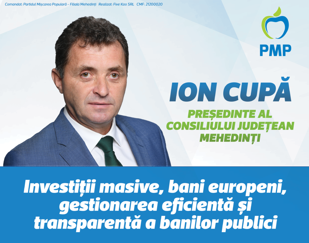 Ion Cupă, candidatul PMP la funcția de președinte al Consiliului Județean Mehedinți: ”MODELUL PMP DE LA PONOARELE VA FI MULTIPLICAT ÎN TOT JUDEȚUL MEHEDINȚI”