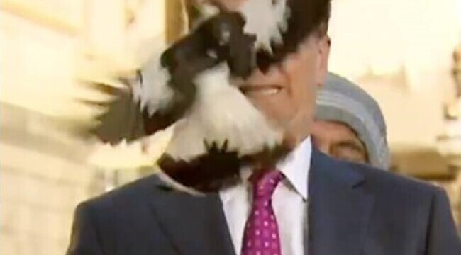 Brett McLeod, reporter al postului de televiziune Nine Network, se pregătea pentru o intervenţie în direct din afara studioului când o coţofana, pasăre asemănătoare unei ciori, s-a năpustit asupra sa. Reporterul şi-a recâştigat însă imediat calmul şi a prezentat ştirea în faţa camerei de filmat.