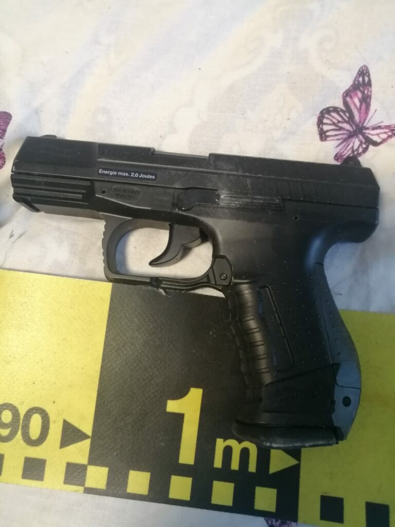 Astfel, in urma activitatilor desfasurate, politistii doljeni au gasit la adresa respectiva doua pistoale tip airsoft, a caror detinere nu este supusa autorizarii, 7 butelii de gaz aferente unuia dintre pistoale si 50 de bile de plastic.
