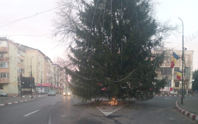 VIDEO! Brad de Crăciun amplasat în mijlocul străzii! Mașinile nu pot să circule