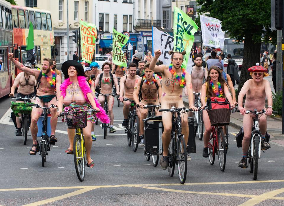Parada anuală – găzduită pentru prima dată la Londra în 2004 – are loc în 200 de orașe din întreaga lume și este organizată de World Naked Bike Ride.