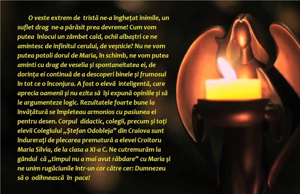Pe pagina de Facebook a școlii unde a învățat până ieri Maria, mesajele nu se mai opresc: „Drum lin catre cer,inger blond!Vei ramane mereu in gandurile si sufletele noastre”, „Of…copil frumos,Dumnezeu să te odihnească in rai!”, „Dumnezeu sa o odihneasca in pace si sa aiba grija de sufletul ei inocent si frumos ! Sincere condoleamte familiei!”, „Inca nu pot sa cred ca e definitiv, ca nu putem intoarce timpul inapoi, pare un vis urat din care speri sa te trezesti , si vrei sa te trezesti, si- ti dai seama ca esti neputincios. Dumnezeu sa te ierte si sa- ti dea ODIHNA, fetita noastra draga!”, „*LA MULŢI ANI !*CU OCAZIA ZILEI DE 8 MARTIE.UN GÎND FRUMOS,PLIN DE MULŢUMIRE ŞI RECUNOŞTINŢĂ VĂ TRANSMITE M.CROITORU – ultimul mesaj primit de la Maria…Dumnezeu sa te odihneasca, draga mea eleva!”.
