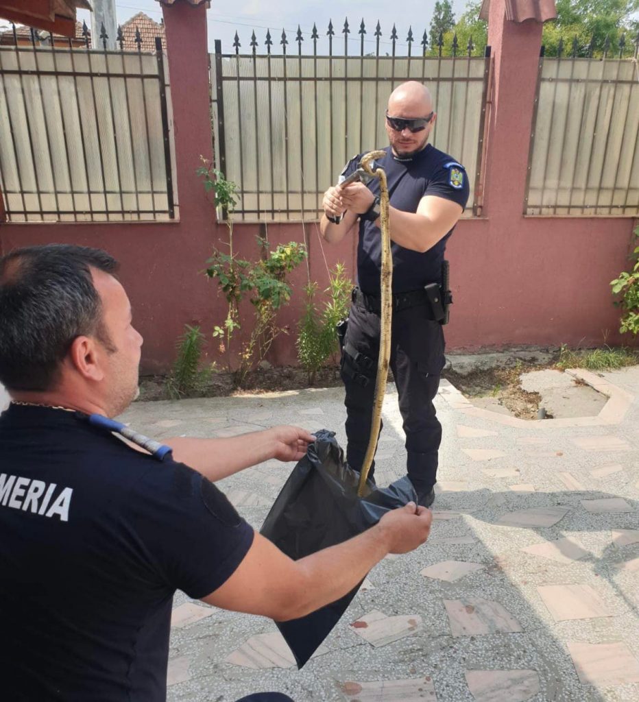 O astfel de intervenție a efectuat astăzi un echipaj de Jandarmerie, la o gospodărie situată pe Calea Timișoarei din municipiul Drobeta Turnu Severin, în urma unui apel prin 112. Persoana sesiza faptul că un șarpe în lungime de peste 1 metru se află în canalizarea din curtea casei, motiv pentru care ne-a cerut ajutorul în această situație.