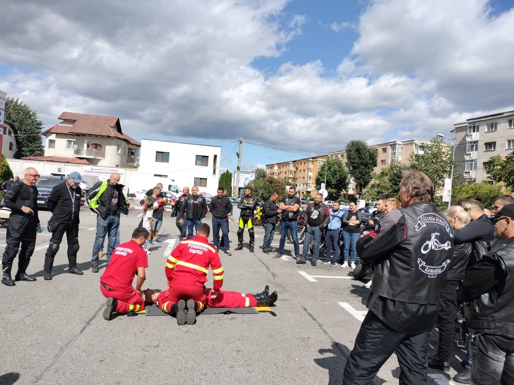 La acest eveniment s-au alăturat și pompieri din cadrul Inspectoratului Județean pentru Situații de Urgență Gorj, care le-au prezentat câteva tehnici de prim ajutor în cazul unui accident de circulație în care sunt implicați motocicliști.