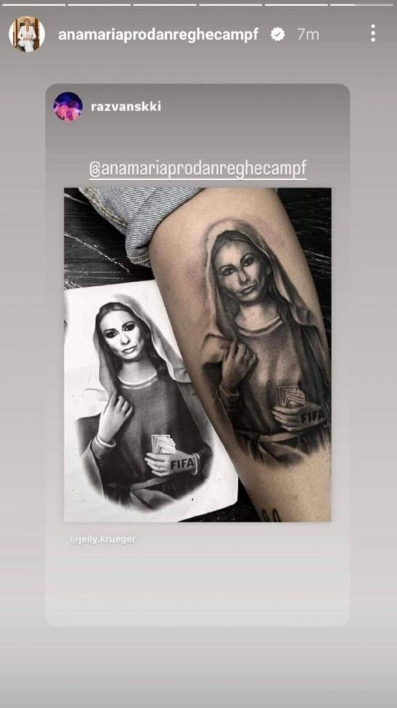 Anamaria Prodan are o comunitate mare de urmăritori, iar aceștia sunt alături de ea în cele mai dificile momente. Astfel, o fană și-a tatuat chipul impresarei pe picior. În tatuaj celebra femeie de afaceri ține în mână un pumn de dolari încasați de la FIFA.