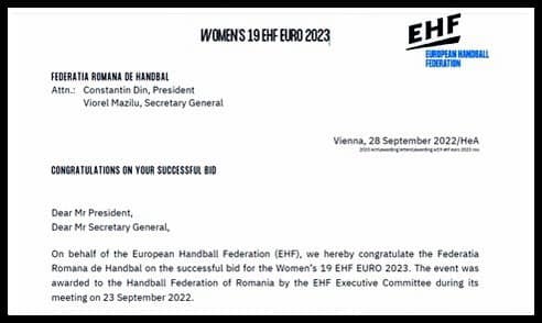 Decizia Comitetului Executiv al Federației Europene de Handbal (EHF) de a atribui României organizarea Women`s 19 EHF EURO 2023 a fost luată săptămâna trecută.
