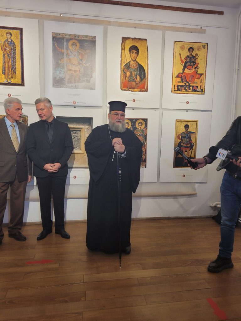 „Pentru prima data aici, în Craiova, este prezentată o expoziție cu icoane și reprezentări ale Sfîntului Dimitrie de la Sfântul Munte Athos. Este o mare bucurie pentru noi oltenii, în general, dar în special pentru noi, craiovenii, care suntem sub patronajul Sfântului Mare Mucenic Dimitrie din începuturile Craiovei. Așa cum știți cu toții, catedrala noastră, sub ocrotirea Sfântului Mare Mucenic Dimitrie, de-a lungul timpului a generat și acest mare oraș, care apoi și l-a luat ca patron spiritual pe acest mare mucenic al nostru, ale cărui sfinte moaște se găsesc astăzi în Thessaloniki”, a spus Arhimandrit Vladimir Dărângă- Mare Eclesiarh al Catedralei Mitropolitane „Sfântul Mare Mucenic Dimitrie.