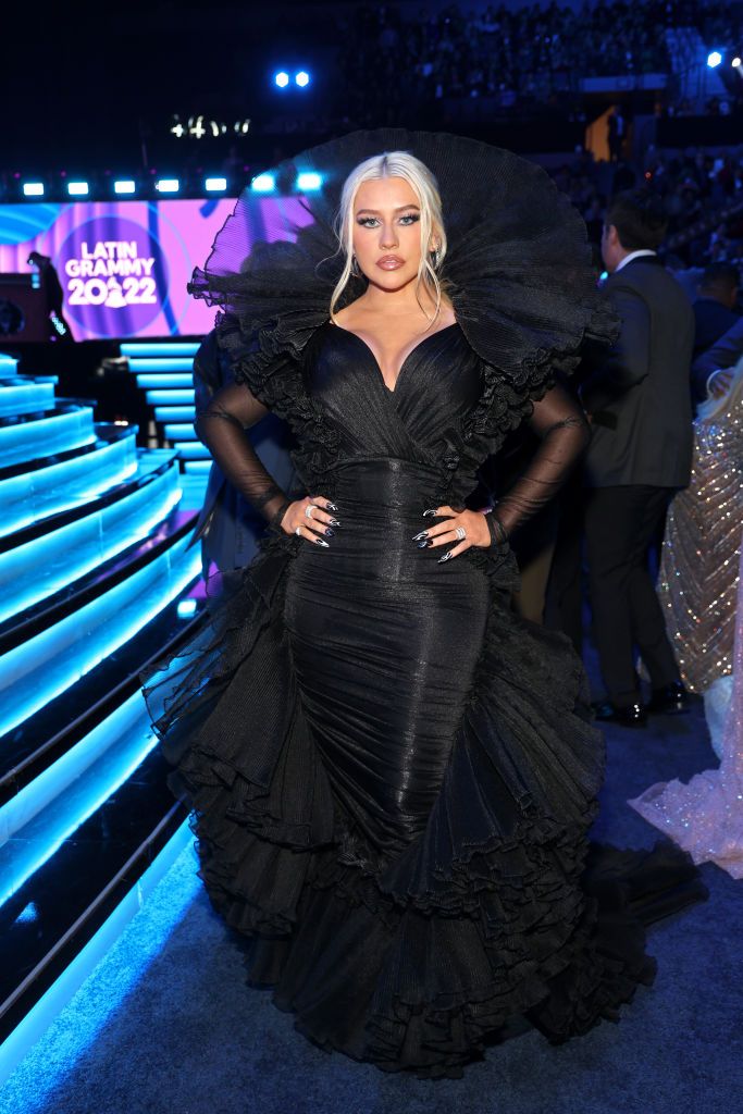Aguilera a fost, de departe, cea mai fotografiată vedetă de pe covorul roșu, cu ținuta ei imposibil de ignorat. Machiată impecabil, cu niciun rid pe față, cu câteva kilograme în minus, Christina Aguilera pare cu 10 ani mai tânără. Premiata pentru “best tradițional pop album”, Christina a urcat pe scena ca să își primească trofeul într-o altă rochie spectaculoasă, neagră, cu volane, la fel de decoltată. Cântăreața a susținut și un recital într-un costum negru de latex, care i-a pus în valoare formele voluptoase.