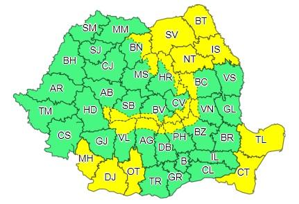 Local şi temporar vor mai fi intensificări ale vântului şi în Muntenia şi Moldova, cu viteze în general de 45 – 55 km/h.