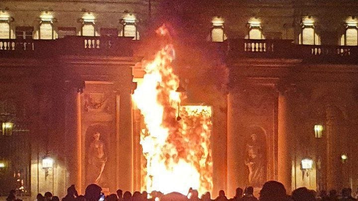 Peste 3.5 milioane de francezi au protestat pe străzi față de adoptarea noii legi a pensiilor. Unii protestatari din Bordeaux au decis să dea foc primăriei. Imaginile șocante care au circulat pe internet arată cum ușa și intrarea în primărie sunt cuprinse de flăcări.