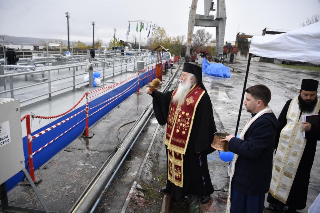 Lansarea la apă a navei a avut loc în prezența mai multor oficialități, dar și a preoților. Preasfințitul Nicodim, Episcopul Severinului și Strehaiei, a oficiat o slujbă religioasă de sfințire a navei.