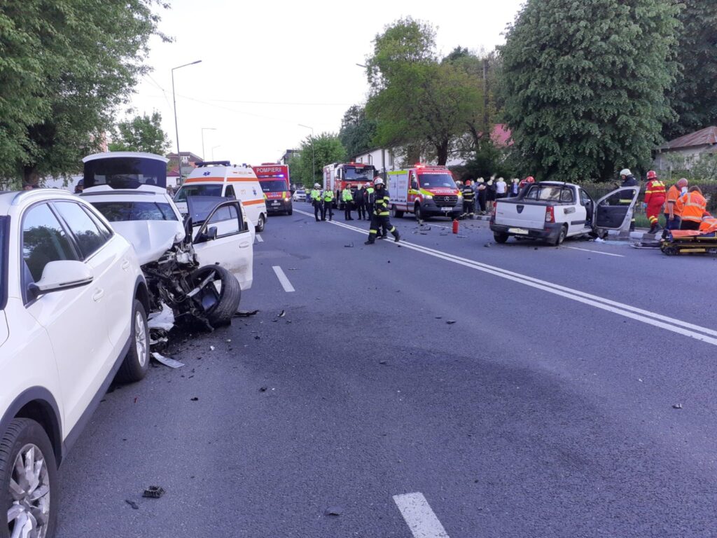 Grav accident rutier în Râmnicu Vâlcea. Doi copii și trei adulți au fost răniți. Un bărbat este resuscitat de echipajele medicale.