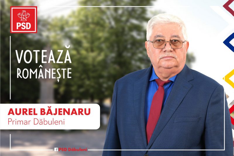 „Tot ce am făcut în cele două mandate a fost pentru comunitate. Singur nu pot să fac nimic. Am nevoie de votul tuturor dăbulenilor. Pe 9 iunie îi aștept la vot, pentru că împreună putem realiza lucruri frumoase” – Aurel Băjenaru.