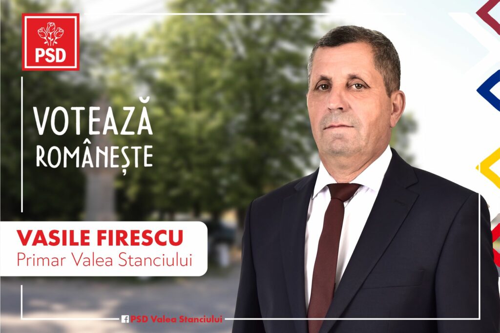Vasile Firescu, consilier local și actual candidat al PSD la Primăria comunei Valea Stanciului, vine cu o viziune clară și o pasiune arzătoare pentru îmbunătățirea condițiilor de viață ale locuitorilor. Acesta se angajează să transforme Valea Stanciului într-o localitate modernă, prosperă și plină de oportunități. Cu o serie de proiecte ambițioase și pragmatice, Vasile Firescu își propune să aducă schimbări tangibile în comunitate, punând accentul pe reabilitarea infrastructurii, dezvoltarea educației și sportului, și îmbunătățirea serviciilor publice.
