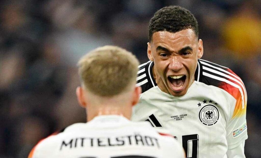 Golurile nemților au fost marcate de: Wirtz, Musiala , Kai Havertz, Füllkrug. Tot Germania a trimis mingea în poartă și pentru scoțieni. Rüdiger a reușit primul autogol de la EURO 2024 și a dus scorul la 4-1. Gazdele s-au mobilizat și au înscris golul de 5-1 cu 30 de secunde înainte de final, prin Can.