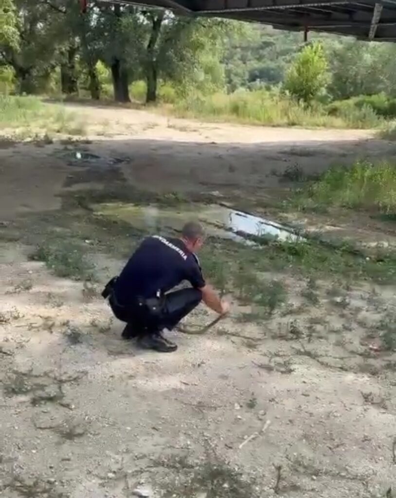 „În cursul zilei de astăzi, printr-un apel la numărul unic de urgență 112, a fost semnalată prezența unui șarpe, într-o locuință situată pe strada Progresului, din municipiul Craiova.Jandarmii s-au deplasat la adresa indicată și au capturat șarpele, pe care ulterior l-au eliberat în mediul natural, nefiind pusă în pericol nicio persoană.Reamintim cetățenilor importanța de a anunța autoritățile competente, în cazul unor situații similare și de a nu se apropia pentru a fotografia sau îndepărta pe cont propriu reptilele.” – Gruparea Mobilă de Jandarmi Craiova