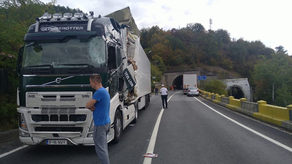 Circulație blocată pe DN 6, pe Defileul Dunării, în Mehedinți. Două TIR-uri s-au izbit în zona tunelului Bahna. Din primele informații, se pare că ar fi înregistrată o victimă care este încarcerată. Este vorba despre unul dintre șoferi.