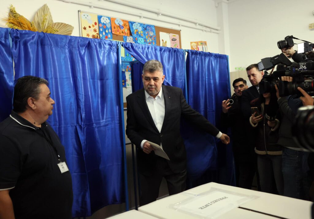 Preşedintele PSD, Marcel Ciolacu, candidat la prezidenţiale, a votat duminică dimineaţă la ora 09:00, la o școală din București. Prezența lui a creat un moment de agitație în secția de vot, unde presa a fost prezentă în număr mare.
