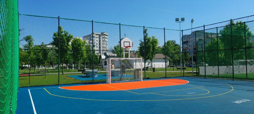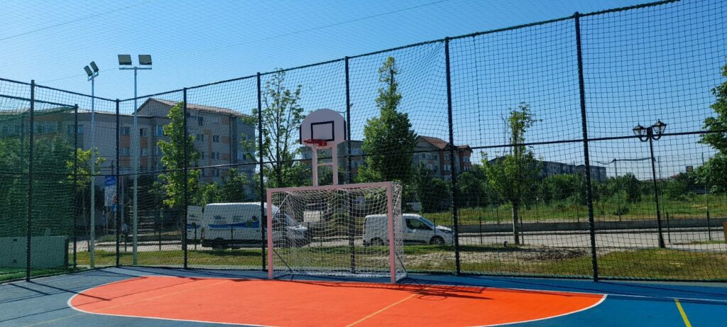 Porţile de fotbal şi handbal de la terenurile de sport pe care firma Dezvoltare Urbană Slatina le construit pe terenurile de sport din Parcul Tineretului au un aspect nemaiîntâlnit. Angajaţii societăţii din subordinea Primăriei au sudat coşurile de baschet fix pe bara transversală a porţilor. În plus, se pune o întrebare şi cu privire la siguranţa copiilor şi adolescenţilor care folosesc terenurile respective şi dacă o construcţie atât de înaltă este bine ancorată în pământ şi nu există niciun pericol să cadă peste ei.