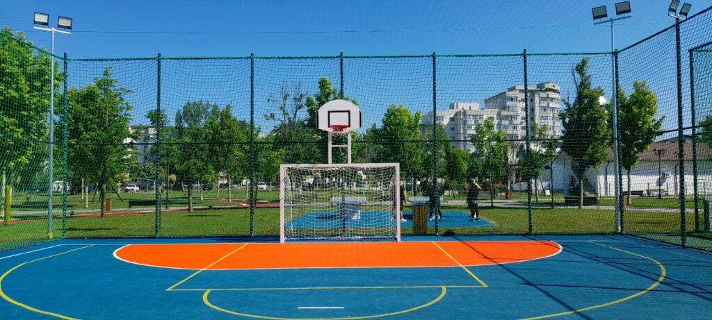 Primăria Slatina a brevetat un nou „sport”! Este de neînţeles de ce pe terenurile de sport din Parcul Tineretului au fost montate coşuri de baschet peste porţile de fotbal şi handbal. Iniţiativa este unică în ţară cel puţin şi probabil că şi în lumea civilizată.