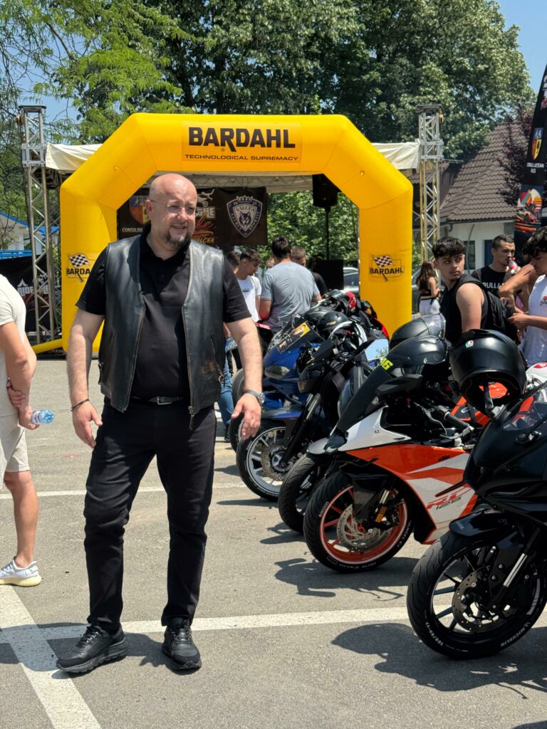 Rădulescu a fost, sâmbătă, alături de pasionații de motociclete la deschiderea Sezonului Moto, care a avut loc la Ștrandul Alb-Albastru din Ocnele Mari.