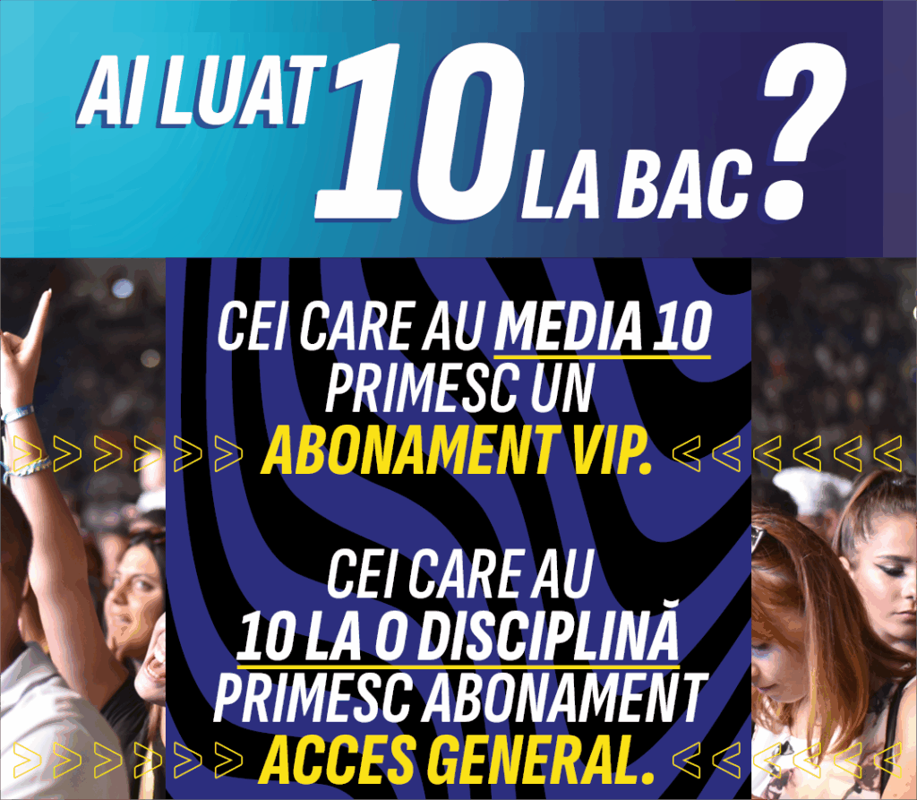 Astfel, elevii care au reușit performanța de a obține media generală 10 la examenul de Bacalaureat vor primi abonamente VIP, care le oferă acces extins și facilități speciale în cadrul festivalului.