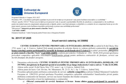 Anunț privind inițierea procedurii competitive pentru atribuirea „Contractului de furnizare de structură metalică pentru fixarea panourilor fotovoltaice și a invertoarelor”