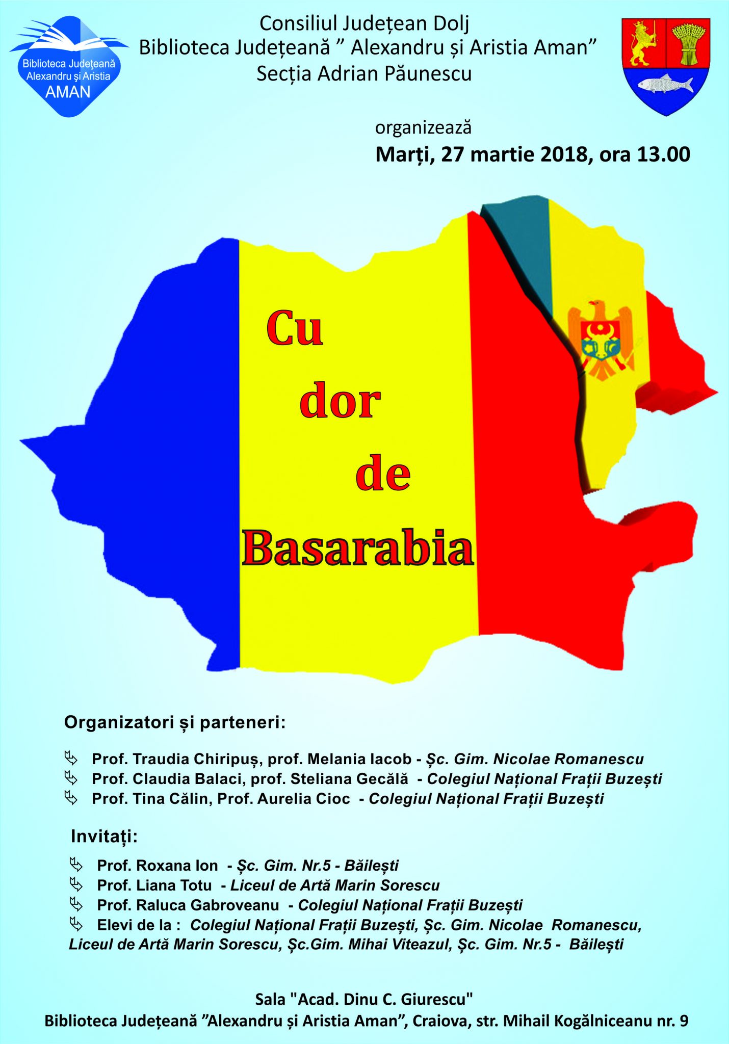 Consiliul Județean (CJ) Dolj a marcat, în deschiderea ședinței de astăzi, împlinirea unui secol de la unirea Basarabiei cu România, printr-o manifestare organizată la Palatul Administrativ, cu susținerea Muzicii Militare…